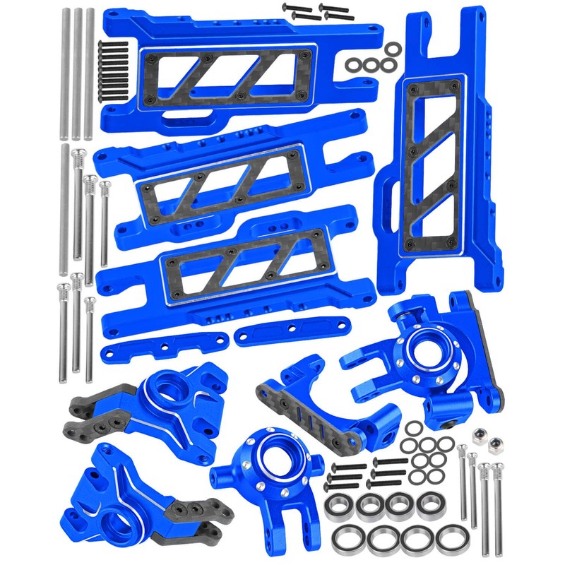 RCYouHott RC Upgrades Part for 1/10 Slash/Rustler/Stampede/Jato/Hoss 4X4 4WD VXL,Aluminum Suspension Arms & Caster Block & Steering Blocks & Rear Stub Axle Carriers & Arm Suspension Mount,Navy Blue