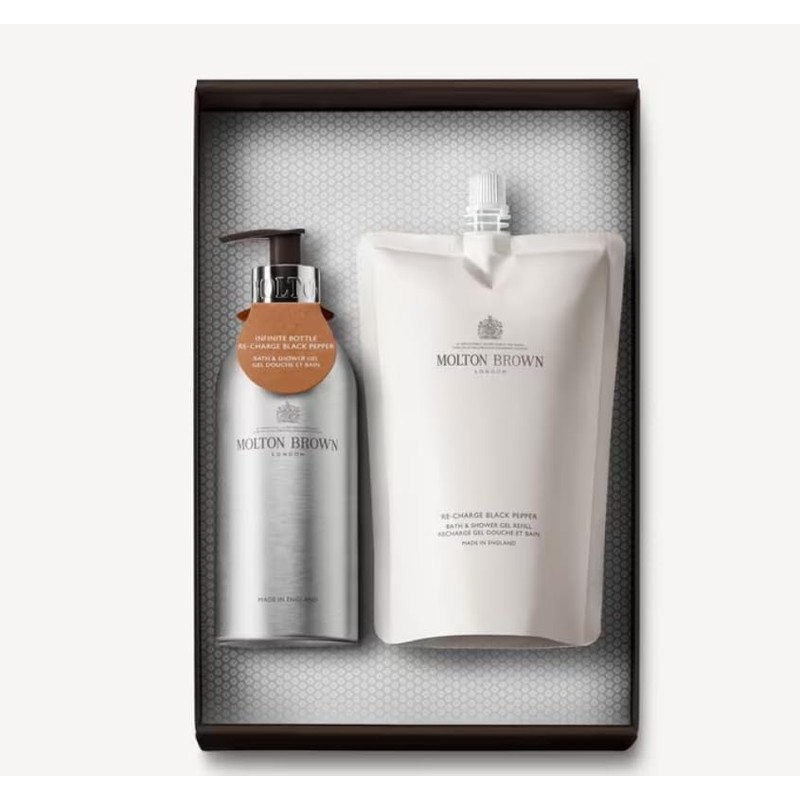- Help loved ones make sustainable swaps this winter with our iconic, woody Refill gift set, complete with our waste-reducing Bath & Shower Gel pouch and Festive Limited Edition Infinite Bottle, designed by marble artist Natascha Maksimovic.