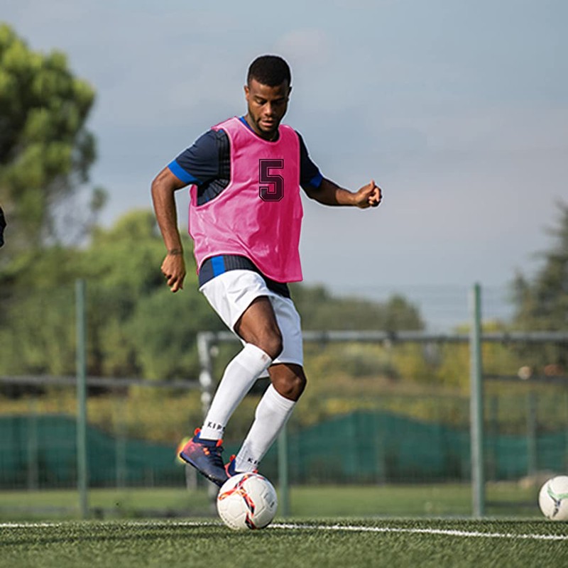 - 【Pinnies material】 Made from 100% POLYESTER MESH fabric. the material is Light Weight, Breathable, Stretchable and Machine Washable.
