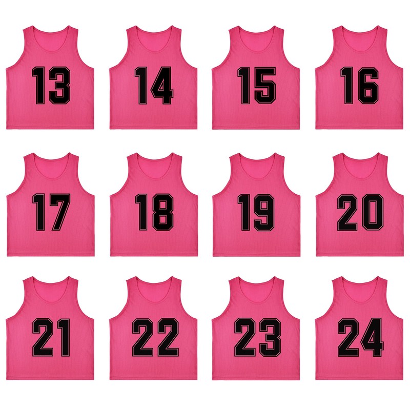 RE-HUO Set of 12 Numbered (13-24) Soccer Vests/Sport Pinnies/Training Bibs with Free Carry Bag(Pink13-24,XL)