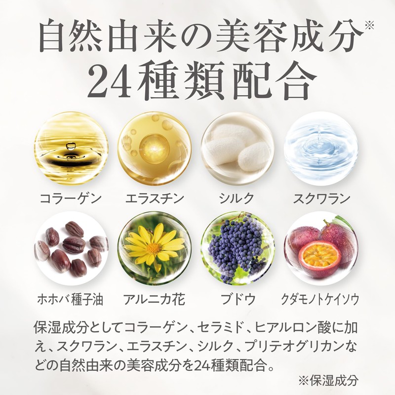- Advanced Science: In addition to the Nobel award winning ingredient "Fullerene,", it contains 24 types of beauty ingredients such as collagen, ceramide, hyaluronic acid, squalane
