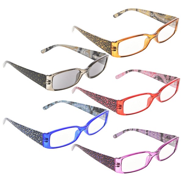 READING GLASSES 5 pack Tiger Patterned Temples Include Sunshine Readers