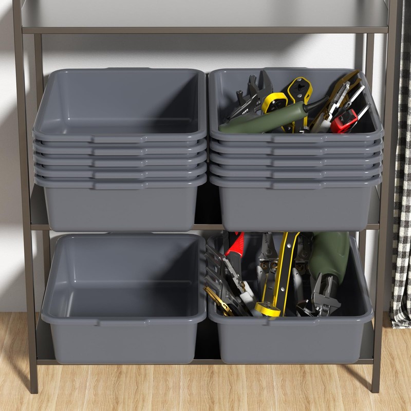 Readsky 12 Packs 13 L Plastic Commercial Bus Tub, Plastic Restaurant Dish Washing Box, Gray