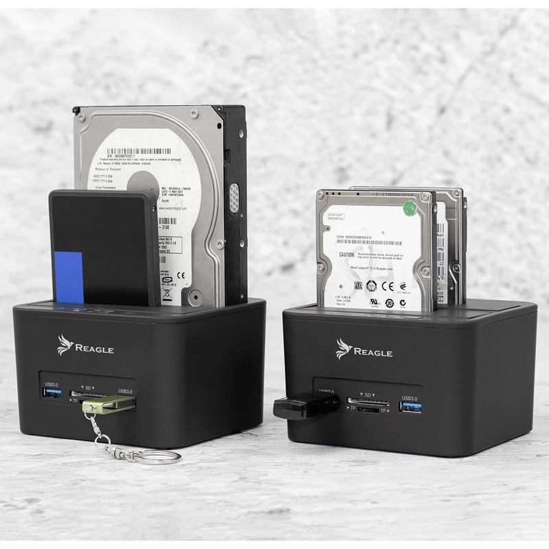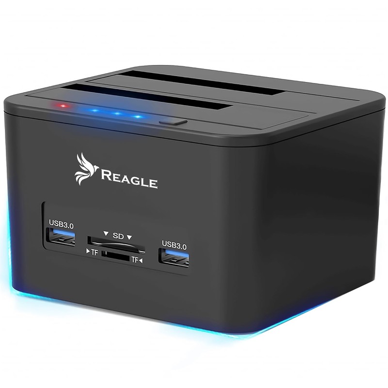 Reagle Dual Bay Docking Station for HDD/SSD, 32TB Support, USB 3.2 Gen 1, Card Reader, Offline Cloning, Compatible with Windows/Mac