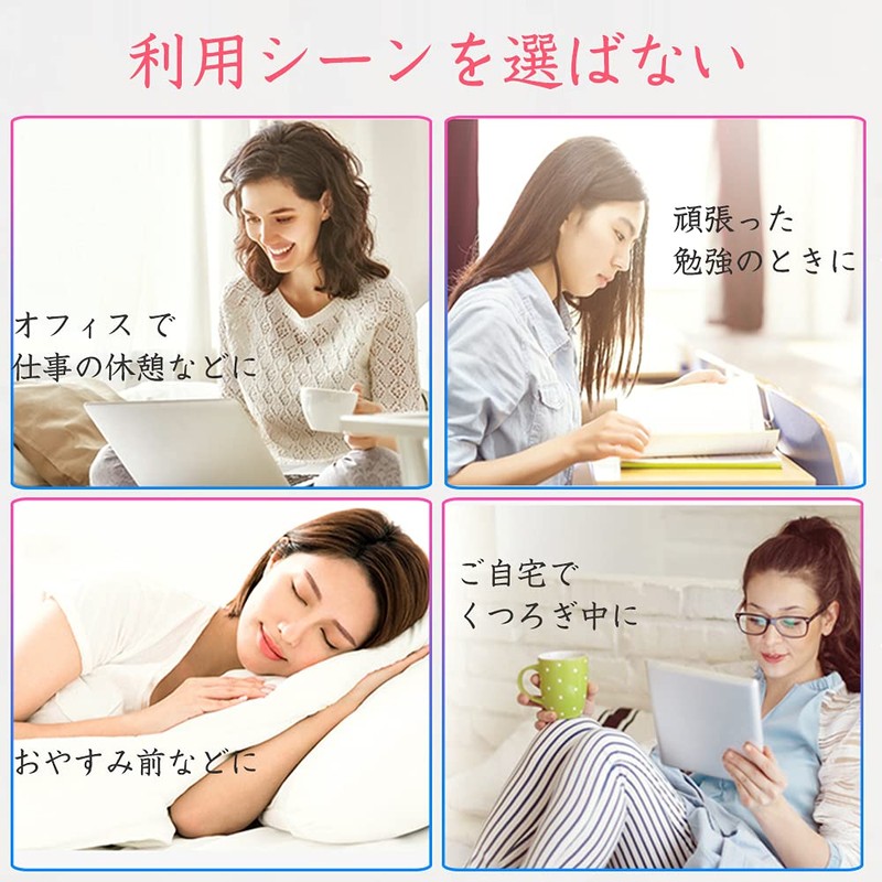 - 毎日パソコン業務の方、スマホを長時間している方、勉強やデスクワークで集中して作業されている方、使い捨てのホットアイマスクでいまいち満足できない方、手軽に目元のエステ、繰り返し使えるのでお得です。長時間仕事や読書、パソコン、スマホ、ゲーム、車の運転、徹夜作業などの方に最適です。
