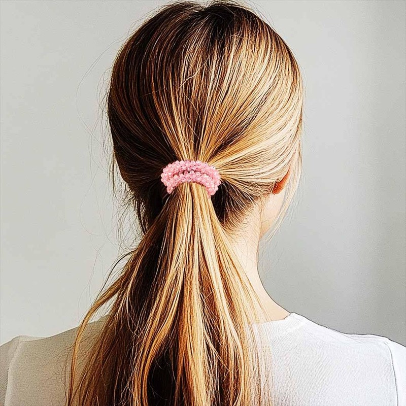 - Pink beads hair ties are made of sparkly beads and high-elasticity rubber bands.