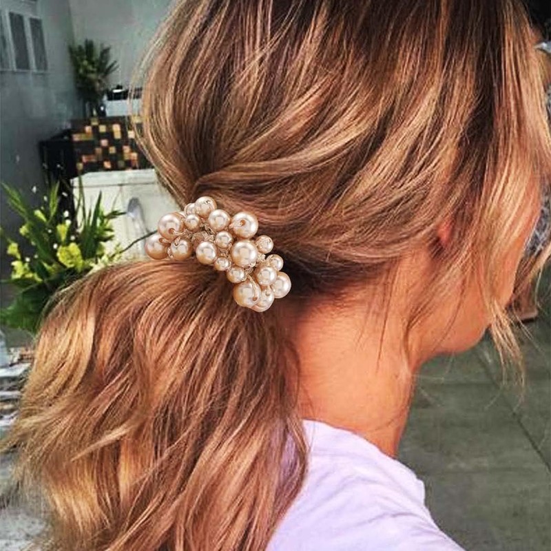 Reaky Perlen-Haargummi, elastische Pferdeschwanz-Halter, Champagnerperlen, Haargummis, dehnbar, Haarschmuck für Frauen, 3 Stück