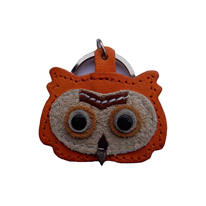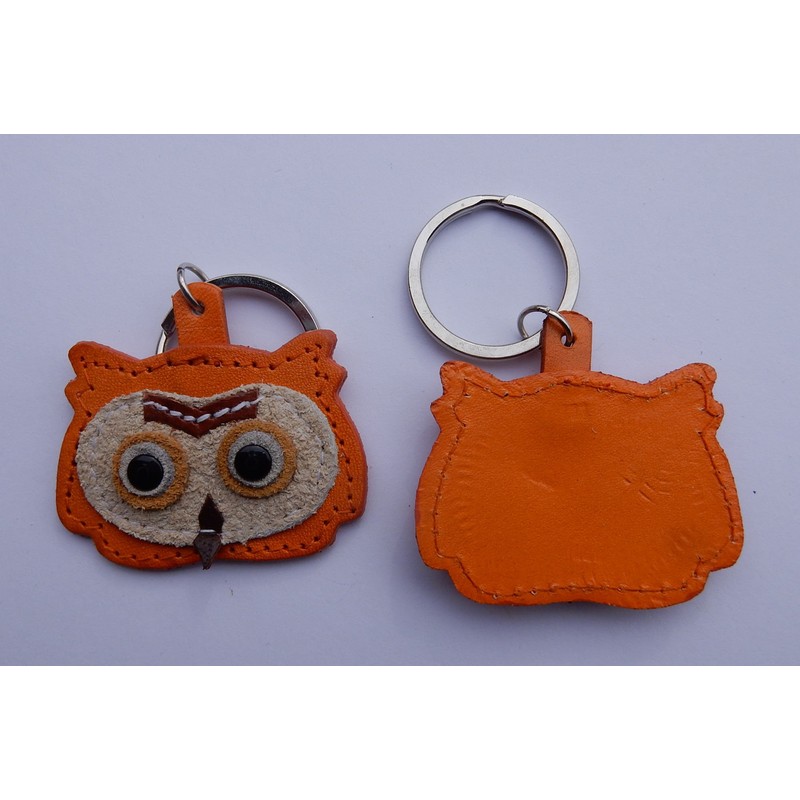 Real Leather Keychain Featuring Owl Pendant, approx. 5 x 5 cm, medium, Orange