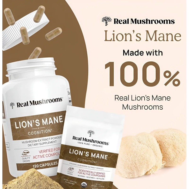 Real Mushrooms Lions Mane Cognition 120 Capsulas - Producto Original de Alta Calidad, Entrega Rápida y Segura, Garantía Incluida