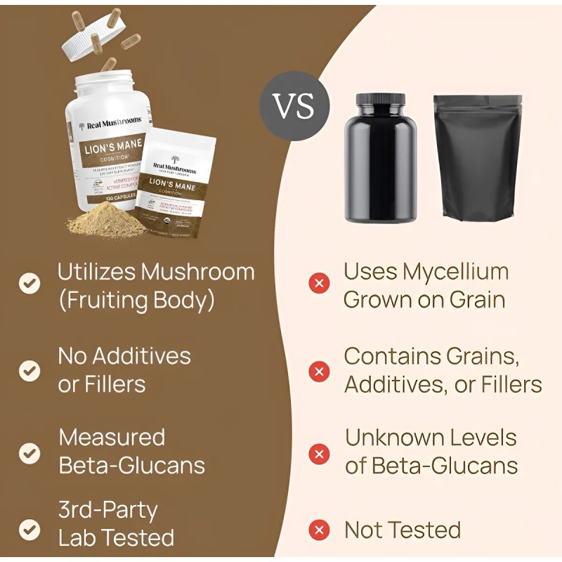 - glucanos beneficiosos, hericenonas y miles de otros nutrientes para proporcionar una función cerebral sin igual con cada cápsula. A diferencia de otros suplementos de memoria y enfoque, no añadimos micelio, almidón, granos o rellenos en nuestros productos, solo obtienes hongos 100% reales en cada botella. Suplemento de memoria definitivo para el cerebro: los hongos utilizados para hacer este suplemento dietético son seleccionados a mano y analizados por expertos que tienen más de 4 décadas de experiencia en crecimiento de setas para garantizar que te proporcionamos el mejor extracto posible. A diferencia de otros suplementos cerebrales para la memoria y el enfoque, los suplementos de melena de león de The Real Mushrooms han medido los niveles de beta