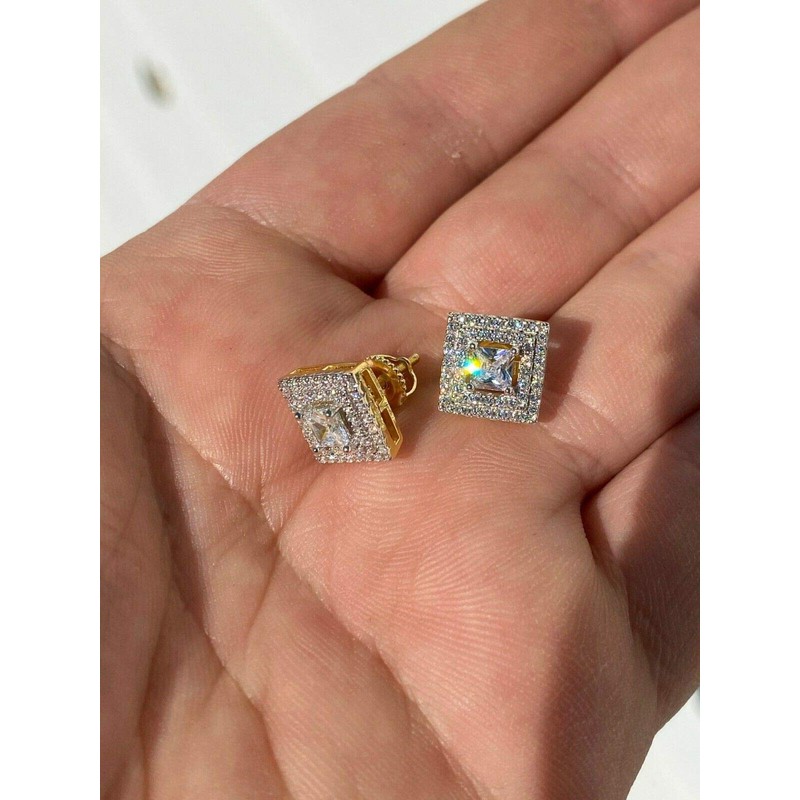 - Screwback Earrings. 10X10mm (0.4") - Heavy Hip Hop Studs Fully Iced Flooded Out Man Made Diamonds