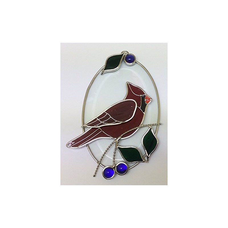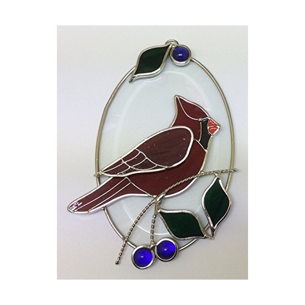 Real Stained Glass Cardinal on Beveled Oval