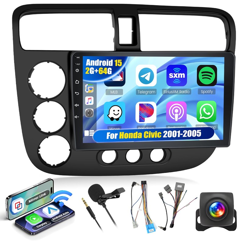 - Effortless Connectivity with CarPlay & Android Auto: This stereo for civic supports wired and wireless CarPlay and Android Auto for easy access to your phone's apps. Activate voice assistants like Siri or Goo-gle Assistant to manage navigation, calls, messages, music, and other functions hands-free