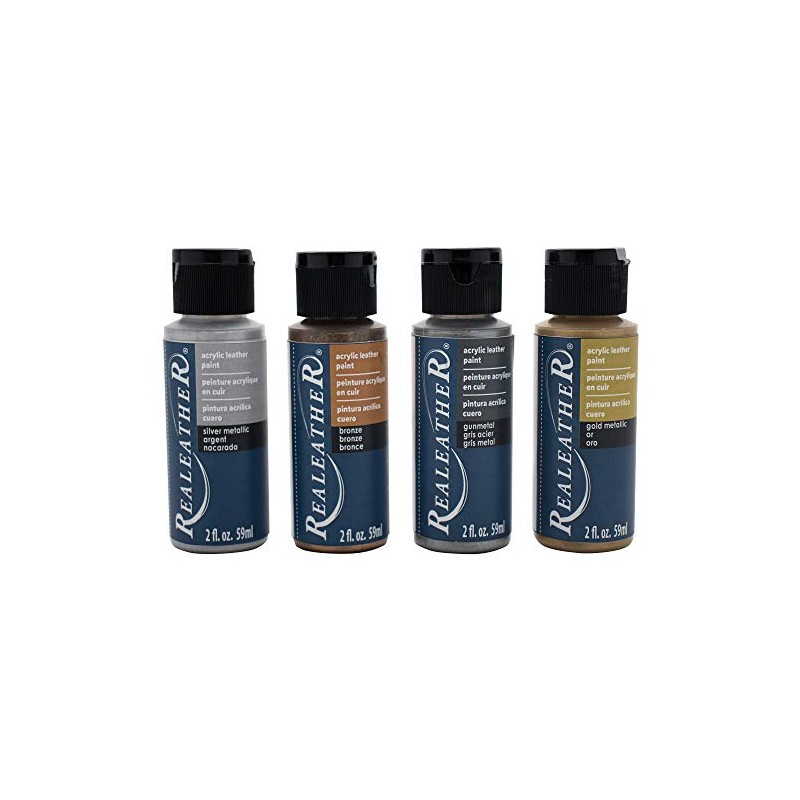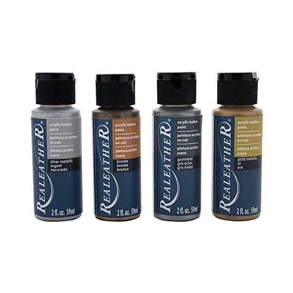 Realeather F2604-01 Leather Acrylic Paints, Metallics 4 Piece