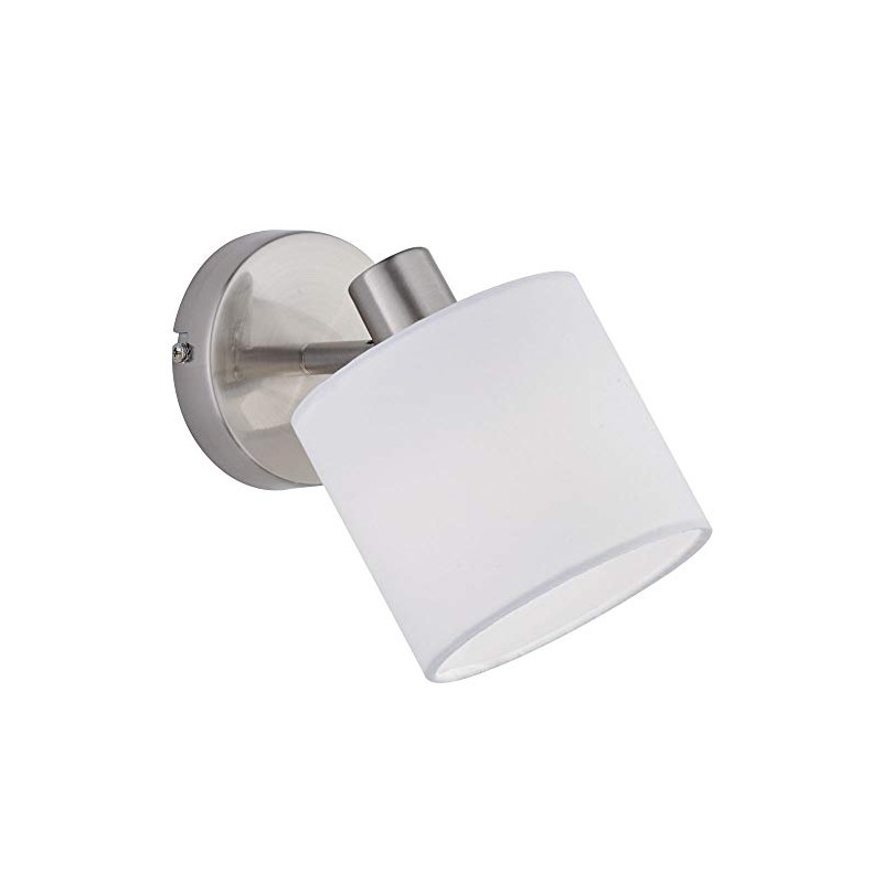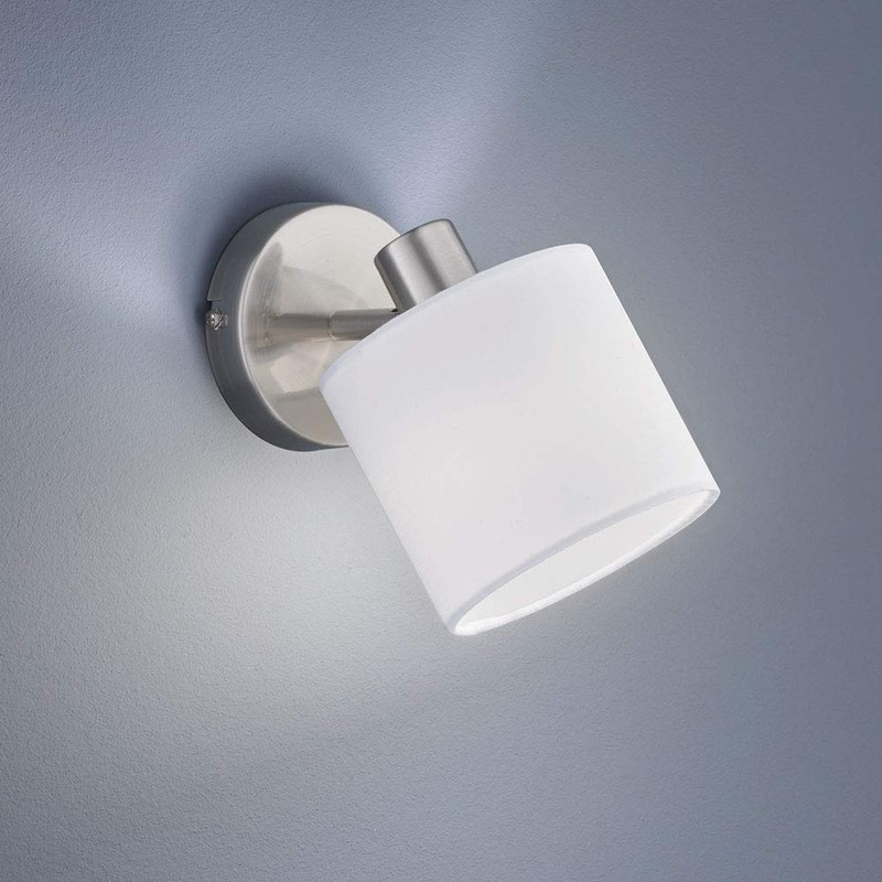 Reality Leuchten Tommy R80331001 Wall Spotlight Matt Nickel with White Fabric Shade