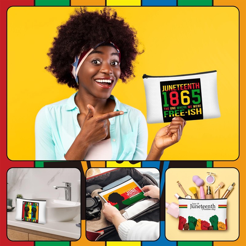 - Size and Material: our Juneteenth Day makeup bag is made of canvas; Each makeup bag measures about 9.25 x 6.89 inches / 23.5 x 17.5 cm and features a zipper design; It is lightweight and resistant to fading, tearing, or breaking; The bag is large enough to hold various cosmetics, such as lipsticks, eyebrow pencils, eyeshadow palettes, and makeup brushes