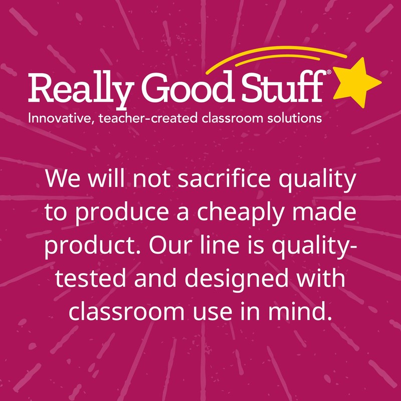 Your Space Saving Storage Solution! These Chair Pockets are a must-have for in the classroom or at home, they allow you to save space for easy organization. Give Your Room A Sharp New Look With Really Good Stuff Chair Pockets.Really Good Stuff Chair Pockets offer roomy gusseted pockets and a clear plastic sleeve which hold a replaceable name tag. Choose a style and color that best fits your classroom. Efficiently and effectively managing your classroom is one of your many keys to a successful school year. Keep your students - and yourself - organized with Really Good Stuff Classic Chair Pockets. Chair pockets have a roomy storage pocket, fit comfortably over the students chair, and don't need to be tied to the chair. They will stand up to your energetic students and are easily spot cleaned if a kid-sized mess should happen.Made of strong, durable fabric with a stitched-on hanging loop, our chair pocket organizer is 16 ?" x 15" (inside width 16 ?", pocket is 8" deep), has a roomy storage pocket with open bottom corners and two metal rivets. A clear plastic sleeve on each chair pocket holds a replaceable name tag (size 9 ?" x 3 ?" each), so your chair pockets are an economical investment for your classroom that can be used year after year. In addition to helping students organize books and papers, our Classic Chair Pockets are durable and water resistant.Available in a variety of styles, fun colors and designs, Really Good Stuff chair pockets will add a colorful touch to your classroom d?cor and keep your room and students organized.))