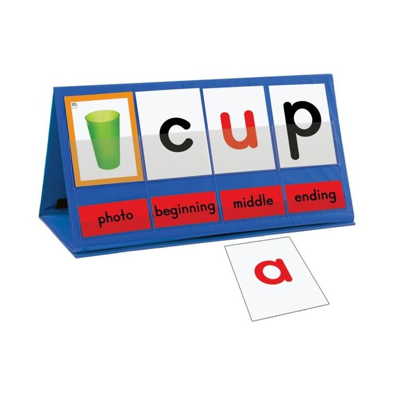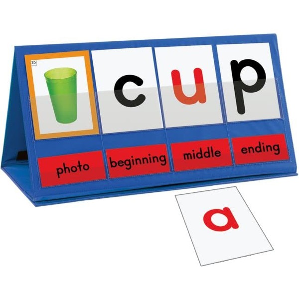 • WHAT’S INCLUDED: This kit includes 1 Desktop Pocket Chart Tent (14.5" x 6.75"), 38 two-sided lowercase Letter Cards (3" by 4"), 46 two-sided Photo Cards (3" by 4"), 9 Sound-Position Cards, and a Reall