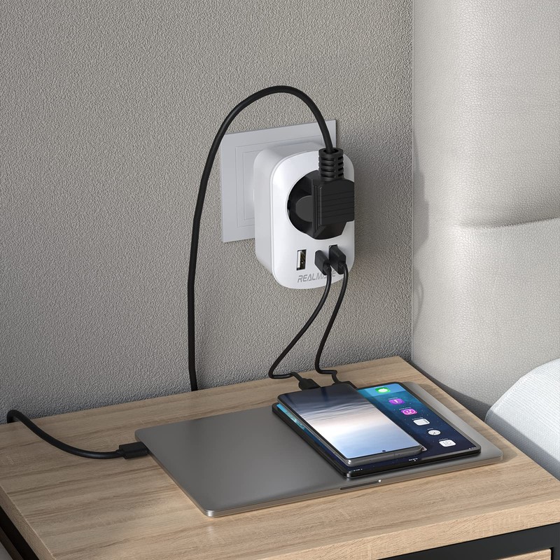 - Multi Safety Protection The travel adapter is certified. Made of fireproof material (up to 750℃), can protect your devices from short circuit, overheating, overcharging and over-current. With a safety lock (75N force required) and prevents children from putting their fingers in the holes to ensure safety.