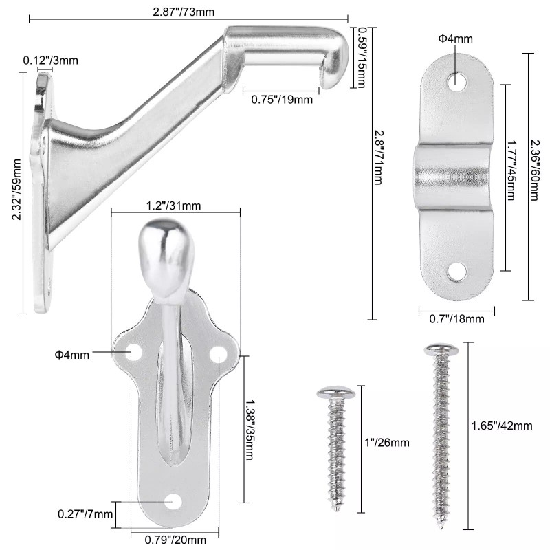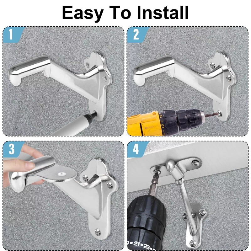 RealPlus 6 Handrail Bracket, 3" Staircase Hand Rail Brackets for Stair Railing - Brushed Nickel