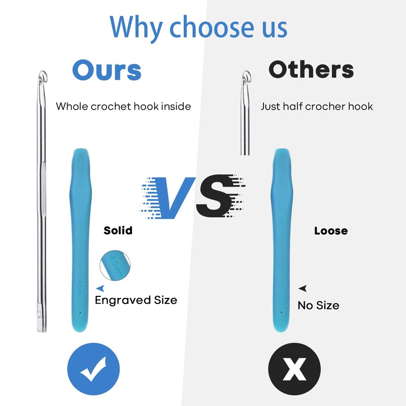 • 【Crochet without Pain】Crochet hooks with soft and comfortable rubber grip handles, can reduce or eliminate hand, wrist or finger pain, without discomfort even when used for a long time. Perfect for Arthritis Hands.
