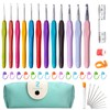 • 【44pcs Crochet Hooks Set】This ergonomic crochet hook set including 12pcs multicolor rubber handle hooks, sizes from B(2mm) to N(8mm). 20pcs Stitch Markers, 9pcs Large-Eye Blunt Needles, 1pcs row counter, 1pcs ring cutter, 1pcs measuring Tape, meet your different demands in crocheting.