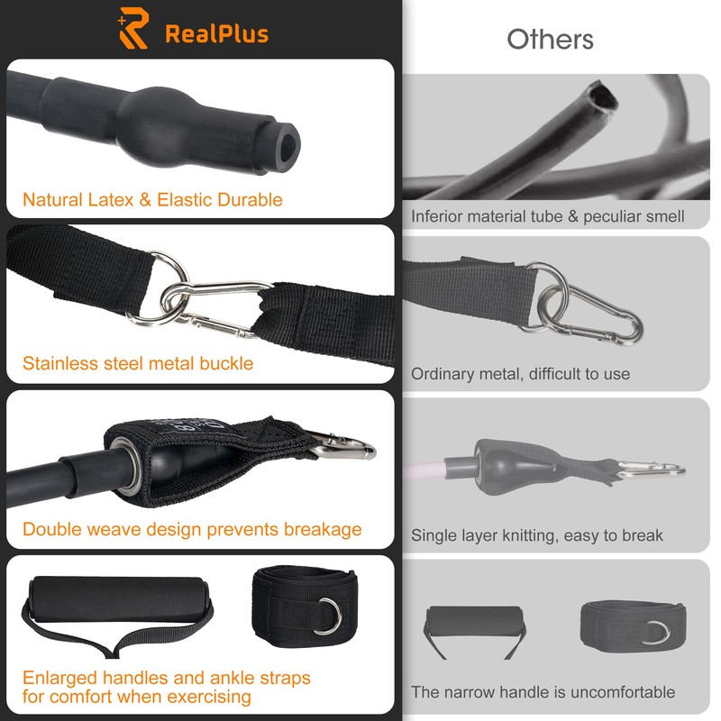 RealPlus Resistance Bands Set for Working, Exercise Bands Men Women with Handles, 5 Tube Fitness Bands with Door Anchor and Ankle Straps, Portable Bag, Workout Bands, Home Gym Training Equipment