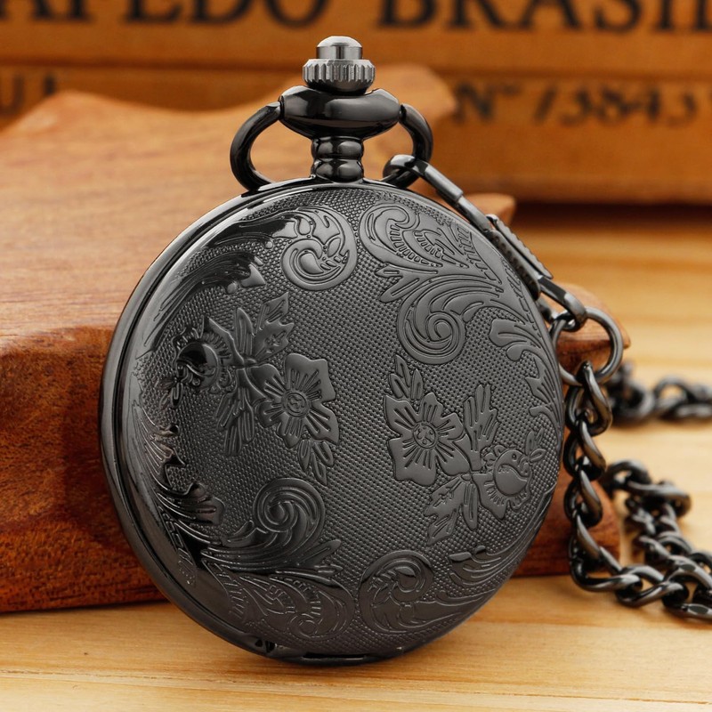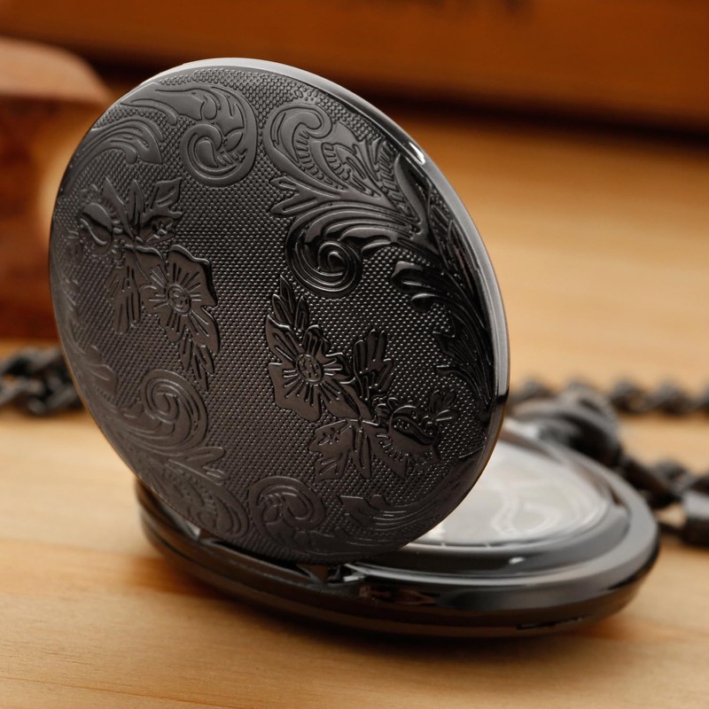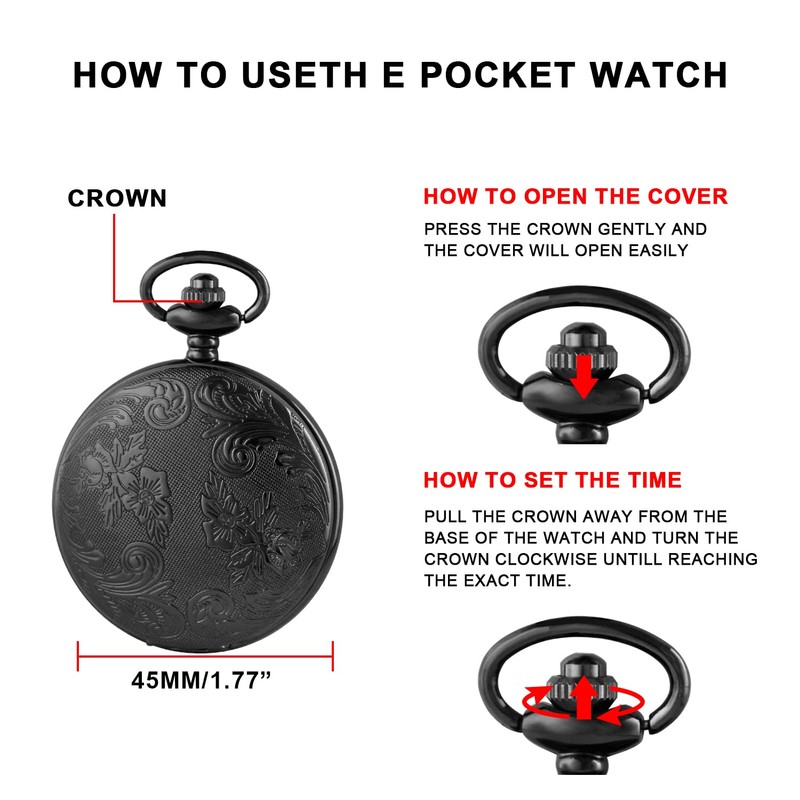 - Black floral design: This pocket watch case is engraved with black flower patterns on both sides, which is perfect for everyday pocket watch accessories.