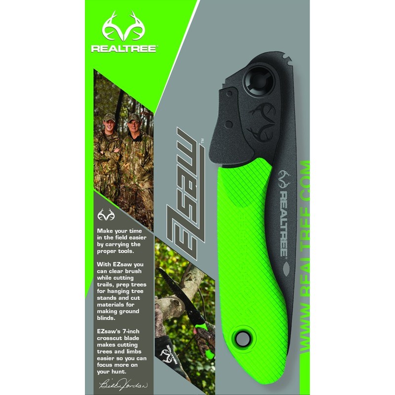 Make your time in the field easier by carrying the folding EZ Saw made by Realtree. You can clear brush while cutting trails, prep trees for hanging tree stands and cut materials for making ground blinds. It features a 6" steel crosscut serrated blade which locks closed. The rubber grip handle gives you comfortable use with a firm grip.