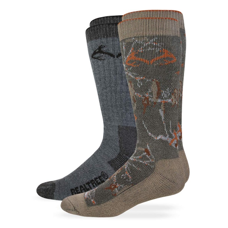 RealTree Mens Merino Wool Camo Cushion Outdoor Boot Socks 2 Pair Pack (L (10-13) - Shoe Size 9-13, Taupe Camo)
