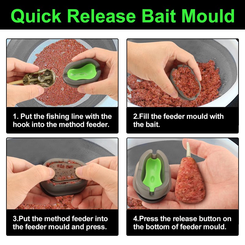 - 【Quick Release Bait Mould】This mould can strongly fix the granular bait, and the bottom has a press type design, which can quickly release the bait conforming to the plane without leaving residue, easy to clean and easy to use.