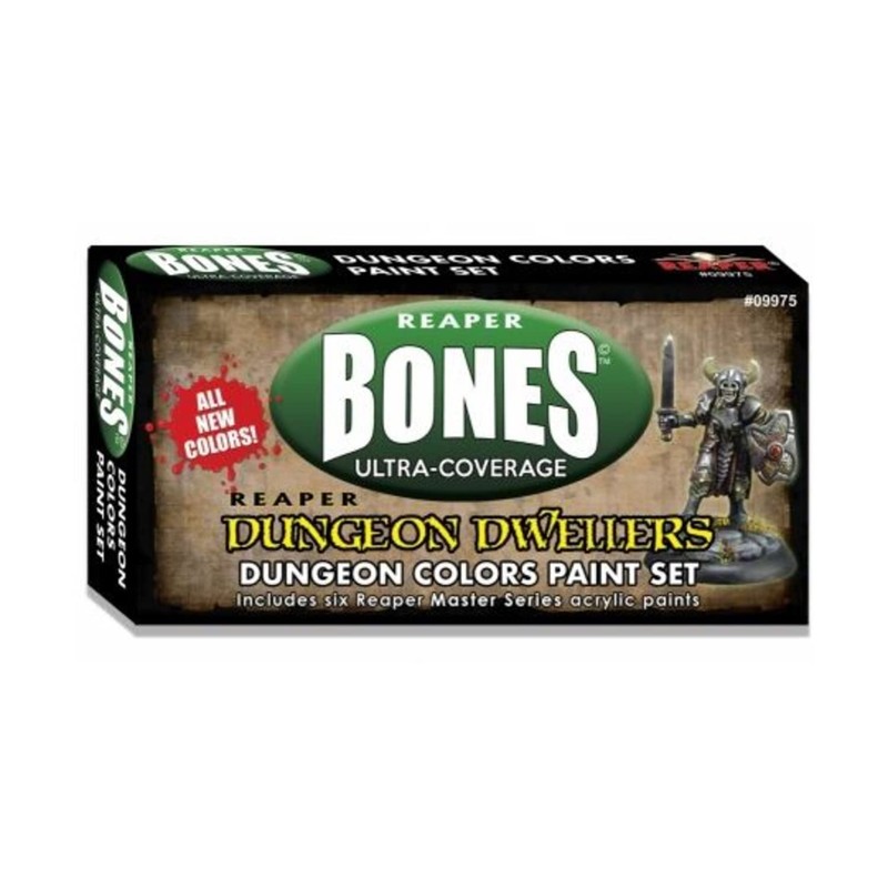 This Dungeon Colors paint set includes six half-ounce (.5oz) bottles of Reaper Master Series Bones Paints. These high-coverage paints work perfectly on metal, resin, or plastic models. Perfect for beginning and advanced painters!