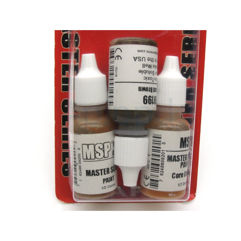 Colors Included:09199 Russet Brown09200 Harvest Brown09201 Orange BrownTriads include three .5 ounce bottles of Master Series Paints from Reaper Miniatures. The 3 colors work well together making shading and highlighting colors a snap. Excellent for thinned paint applications like layering, washes and glazesSmooth and fluid right out of the bottle means less thinning requiredEnhanced flow properties make painting small details easier1/2 oz dropper bottlesDries matte100% compatible with the MSP HD rangeAirbrush-friendlyNon-Toxic, Water SolubleFound in Reaper Miniatures' Category: Master Series Paints, Master Series Triads