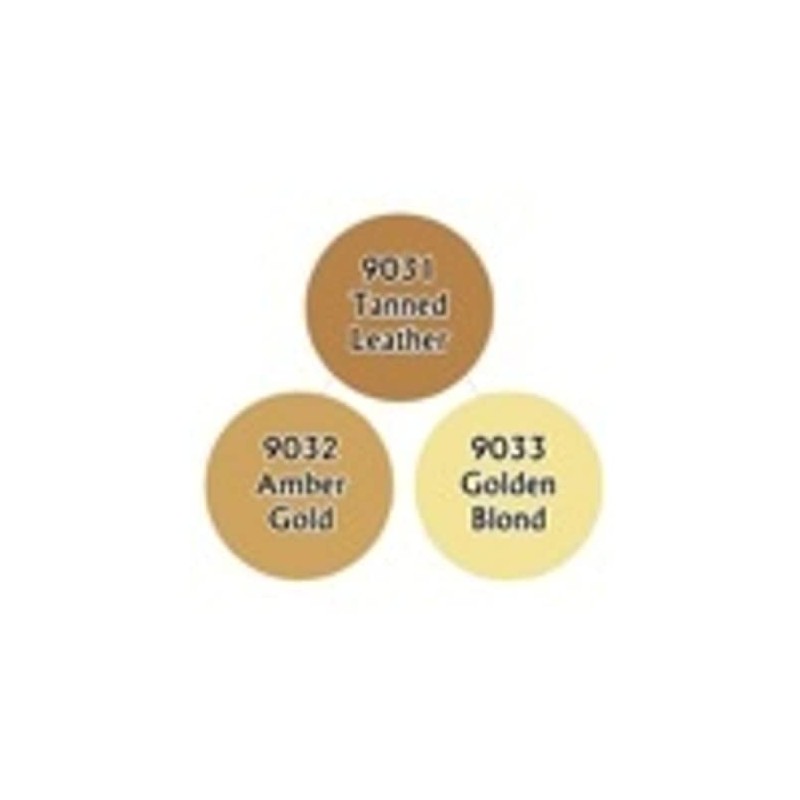 Colors Included:09031 Tanned Leather09032 Amber Gold09033 Golden BlondTriads include three .5 ounce bottles of Master Series Paints from Reaper Miniatures. The 3 colors work well together making shading and highlighting colors a snap. Excellent for thinned paint applications like layering, washes and glazesSmooth and fluid right out of the bottle means less thinning requiredEnhanced flow properties make painting small details easier1/2 oz dropper bottlesDries matte100% compatible with the MSP HD rangeAirbrush-friendlyNon-Toxic, Water SolubleFound in Reaper Miniatures' Category: Master Series Paints, Master Series Triads