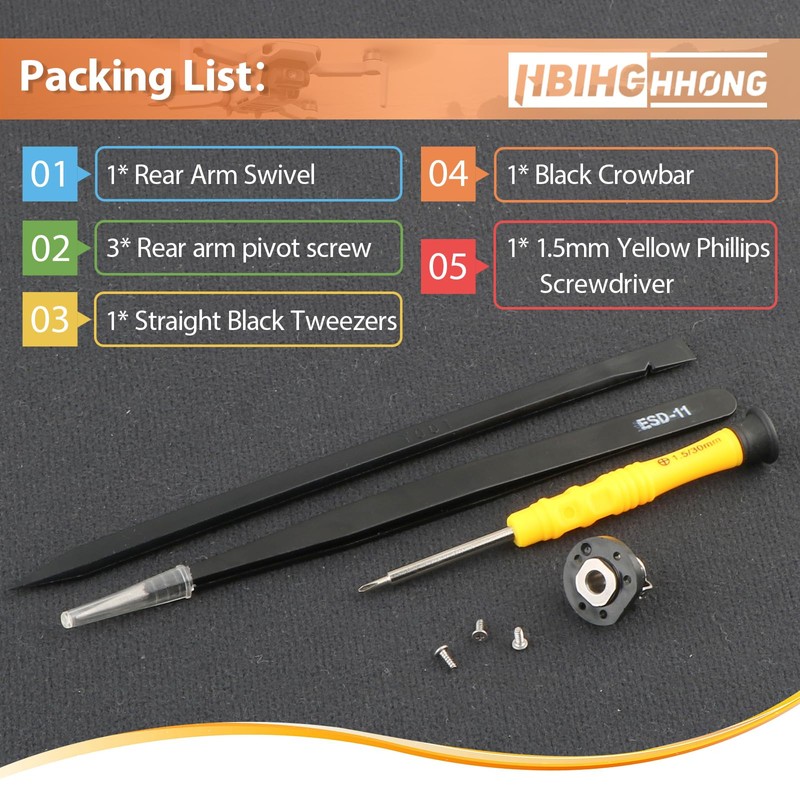 - Professional Repair Tools: Comes with set tools for DJI Mavic Mini rear arm axis replacement, it include the Fixing screws /screwdriver of “T5” /anti-static tweezers and T001 pry bar , help to disassemble and install more convenient and easily