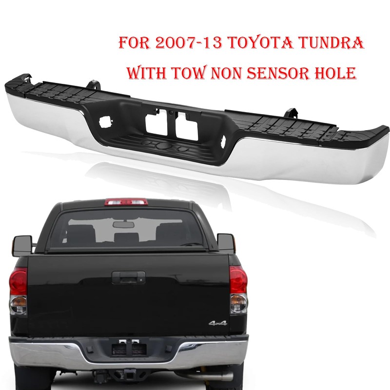 Rear Bumper Step Bumper Assembly compatible with 2007-2013 Toyota Tundra W/TOW Hook w/o SENSOR Hole, Chrome