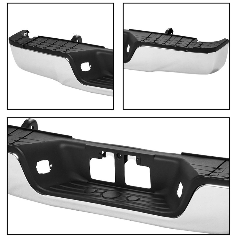 • OEM Style Rear Bumper, made of Heavy-Duty Die-Formed Steel with a chromed to ensure an extremly long lasting performance life in outdoor conditions.