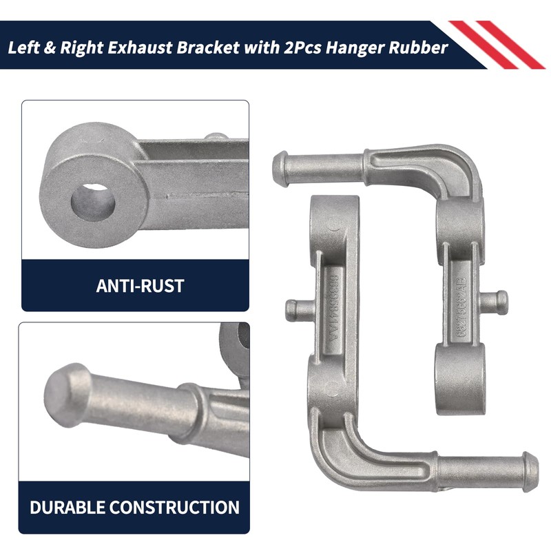 - [Package Includes]: 2 x Exhaust Bracket, 2 pcs Rubber Hanger. (As shown in picture)