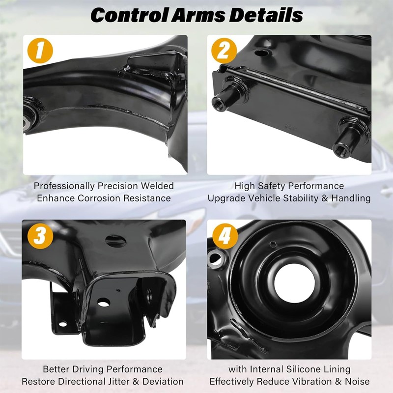 - Product Features: The lower suspension control arm has high torsion resistance that can provide support for lateral forces. With internal silicone lining effectively reduce vibration and noise. Restore directional jitter and deviation to get better driving performance. Upgrade vehicle stability and handling with High safety performance