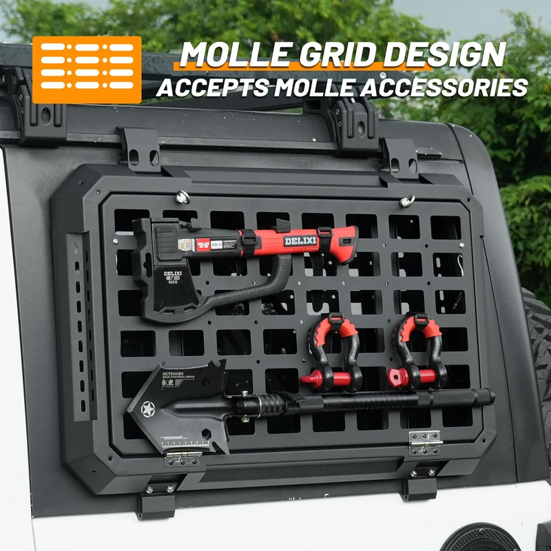 Rear Window Storage Table Molle Panel Flank Kit Rear Foldable Window Shelf for Jeep Wrangler 2018-2025 JL 4 Doors
