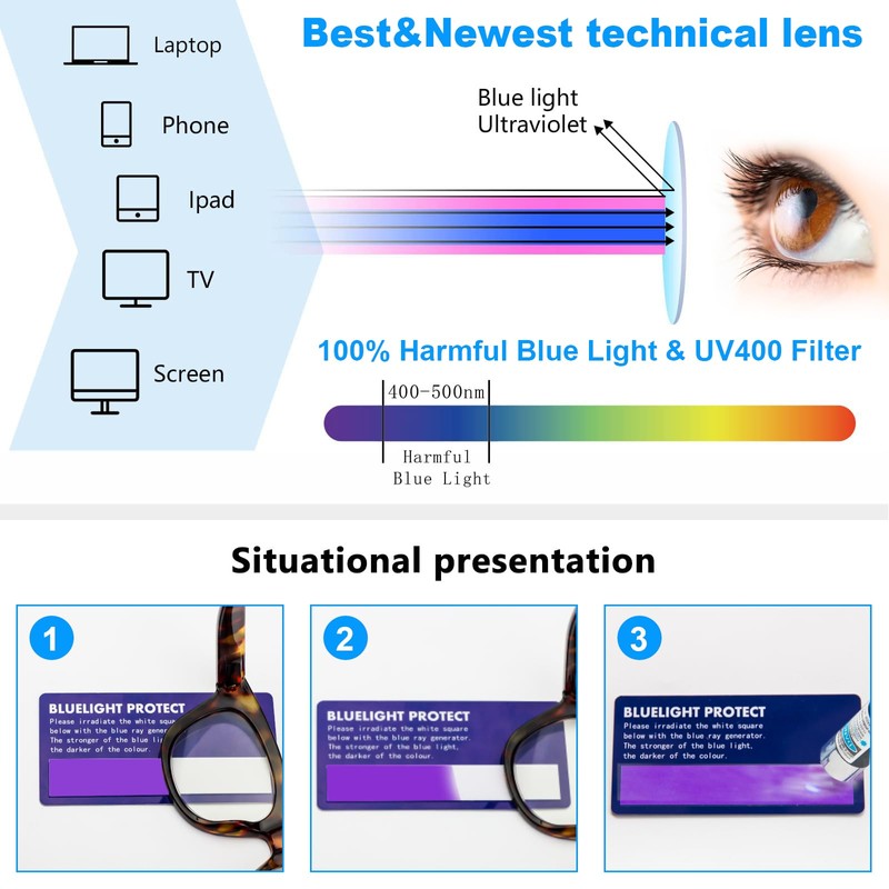 • Blue Light Blocking Lenses: With UV400 protection, the lenses block harmful blue light, reducing exposure to blue light from digital electronics and reading. Provides all-day protection for your eyes and reduces eye fatigue.