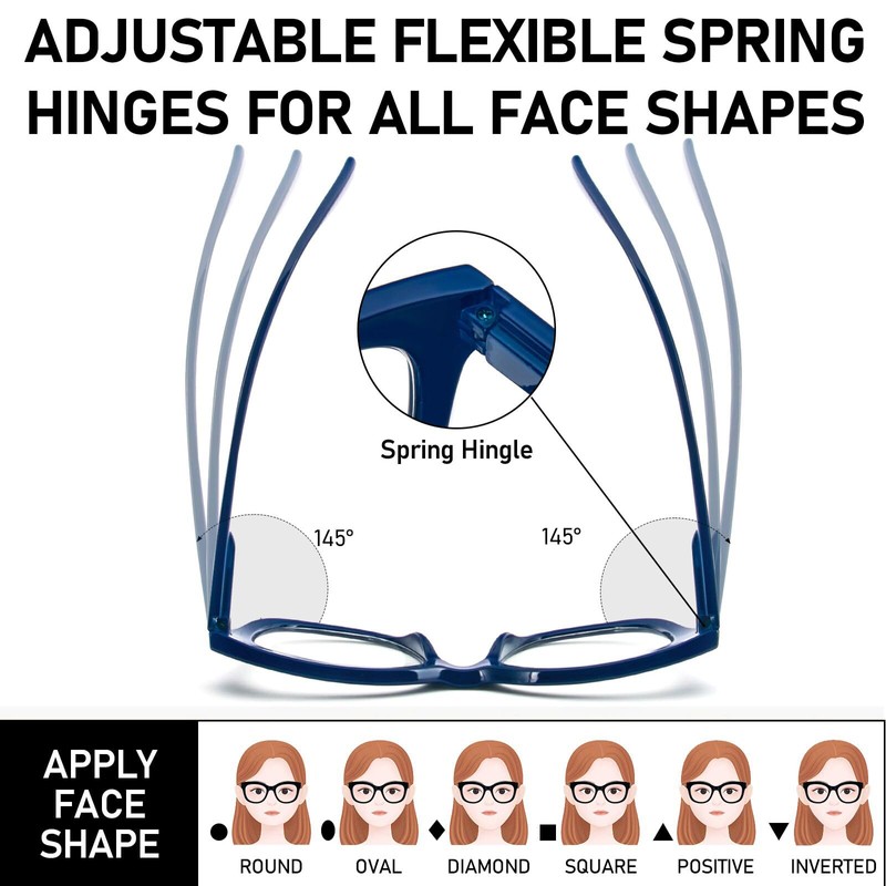 - Lightweight & Spring Hinge: Made of lightweight materials, the flexible spring hinges provide a stress-free wearing experience that reduces discomfort and squeezing. Clear, scratch-resistant lenses give you a clear view.