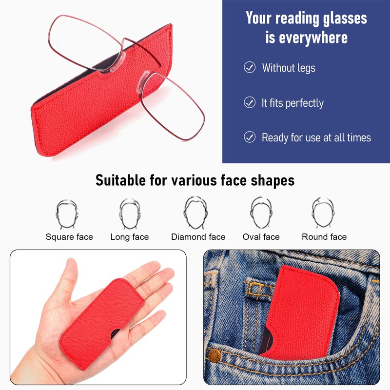 • Great value: 2 armless reading glasses, 2 leather case, 1 cleaning cloth. We provide a 90-day money-back guarantee and lifetime warranty for all products. If you have any questions, please contact us without hesitation.
