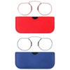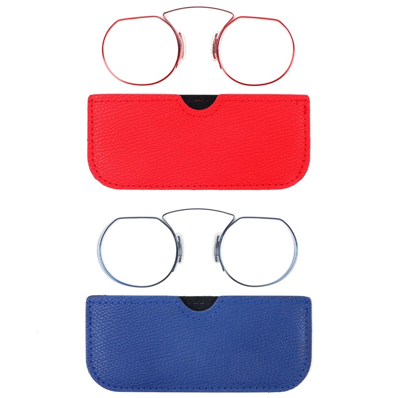 REAVEE 2 Pack Small Armless Reading Glasses for Men Women, Blue Light Blocking Round No Temple Thin Compact Readers with Portable Case, Red and Blue +3.0