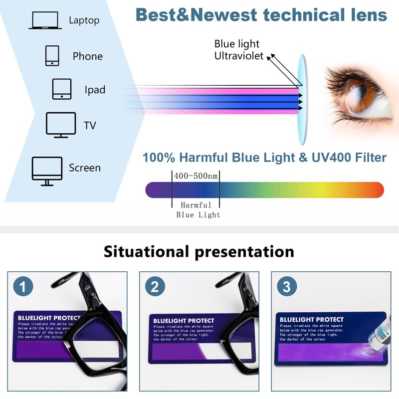 • 【Blue Light Blocker & UV400 Protection】Protect your eyes from harmful blue light and relieve eye fatigue and discomfort. . Have a pair handy and enjoy your digital time without any worries from eyestrain, migraine, sleeplessness and blurred vision!