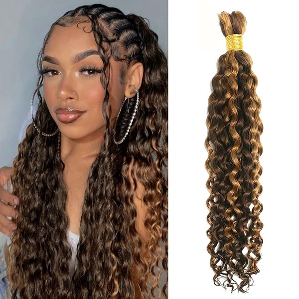Rebasar Human Braiding Hair Water Wave 50 g for Boho Braids Weaving Hair Bulks Brazilian Hair P4/27 Blonde Highlights Colour Curly 20 Inches