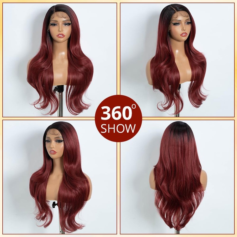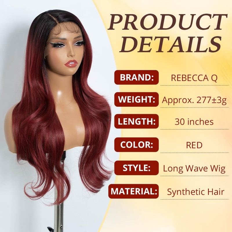 Rebecca Q Long Wavy Wigs for Women Side Part Lace Front Wig Layered wig with Baby Hair Long Red Synthetic Wigs For Daily Cosplay Party 28 inches