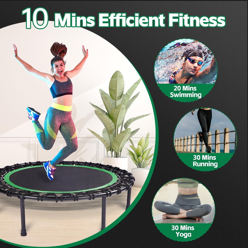 According to researches, 15 minutes of bouncing on a trampoline is equivalent to 30 minutes of running or swimming. Don't you want to keep fit and strengthen the core in a convenient way? Don't you want to have fun with your children jumping on the mini-trampoline? Our Mini Exercise Trampoline will exactly achieve your expectation. Due to lightweight, It is easy to store and move from one room to another or from home to the gym. With instructions, you can install it in several minutes by yourself.