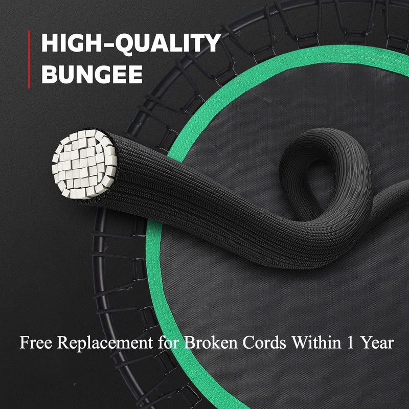 - Individual Bungee Core Design:The Mini trampoline use 30 individual bungee bands, it will provide more durable and more support when you jumping, and also reduce the noise than springs.