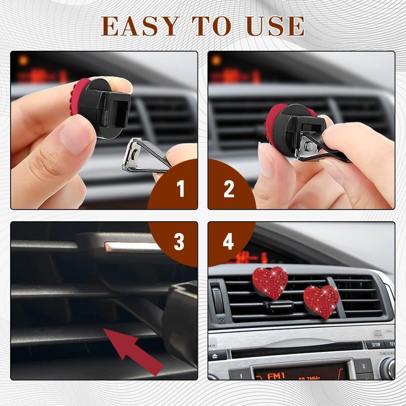 - Easy to Use:This car vent decoration is easy to install, you just need to snap the clip into the centre of the car air vent or any preferred position, easy to operate. Whether installed horizontally or vertically, our car vent clips decor can be firmly fixed on the car air vents, not easy to fall off